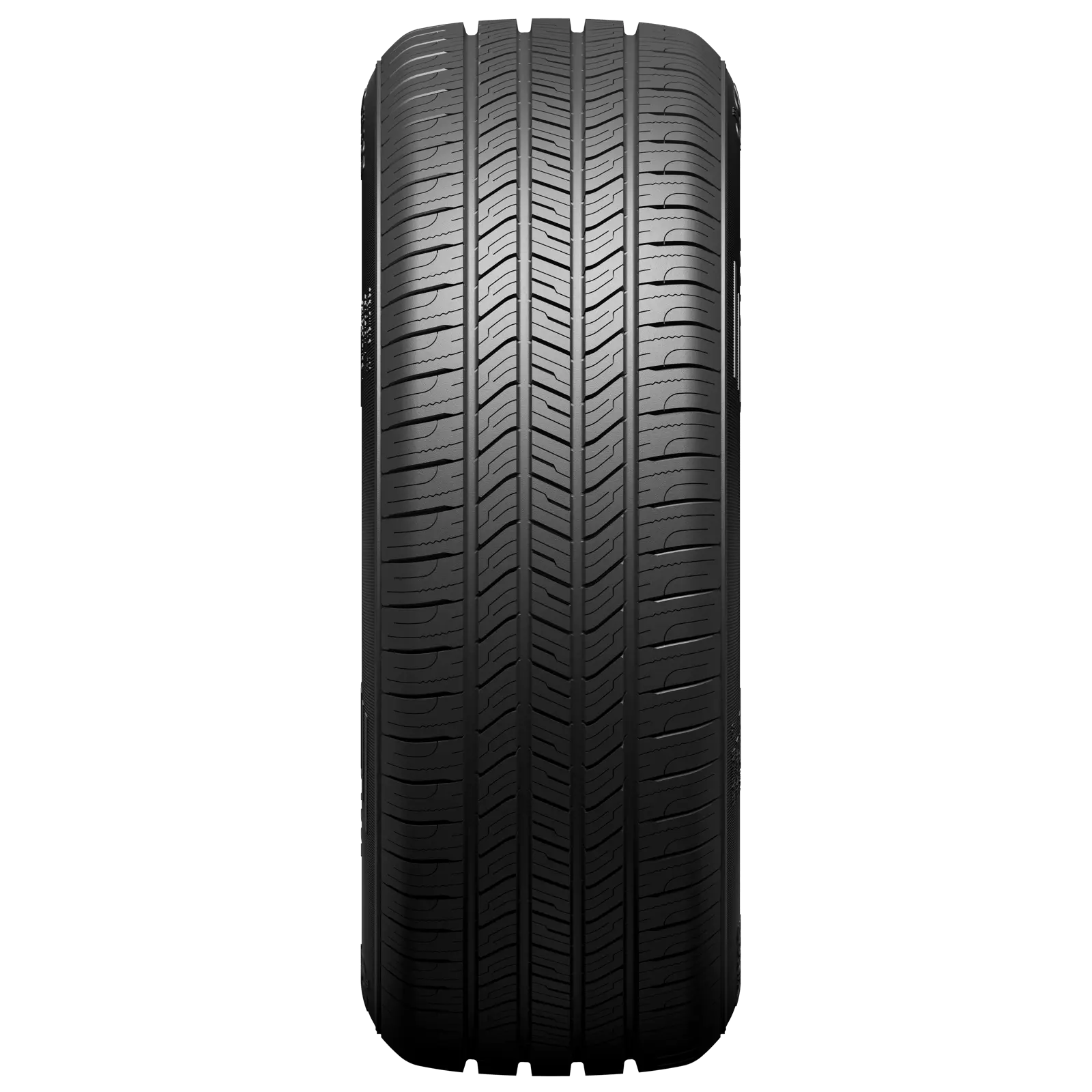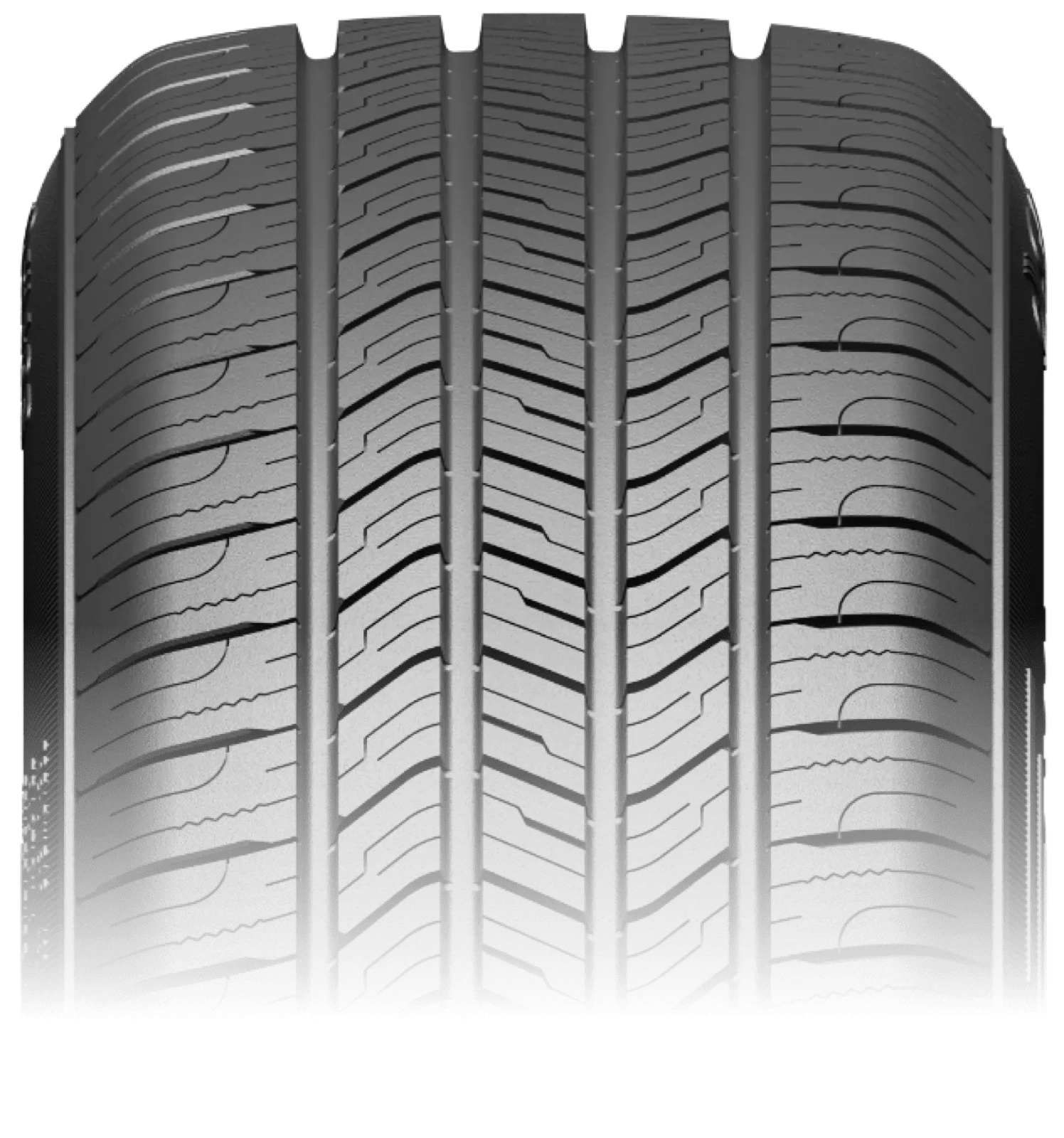 Proprietary rubber compounds and tread optimization result in quiet, comfortable ride while promoting even wear characteristics.